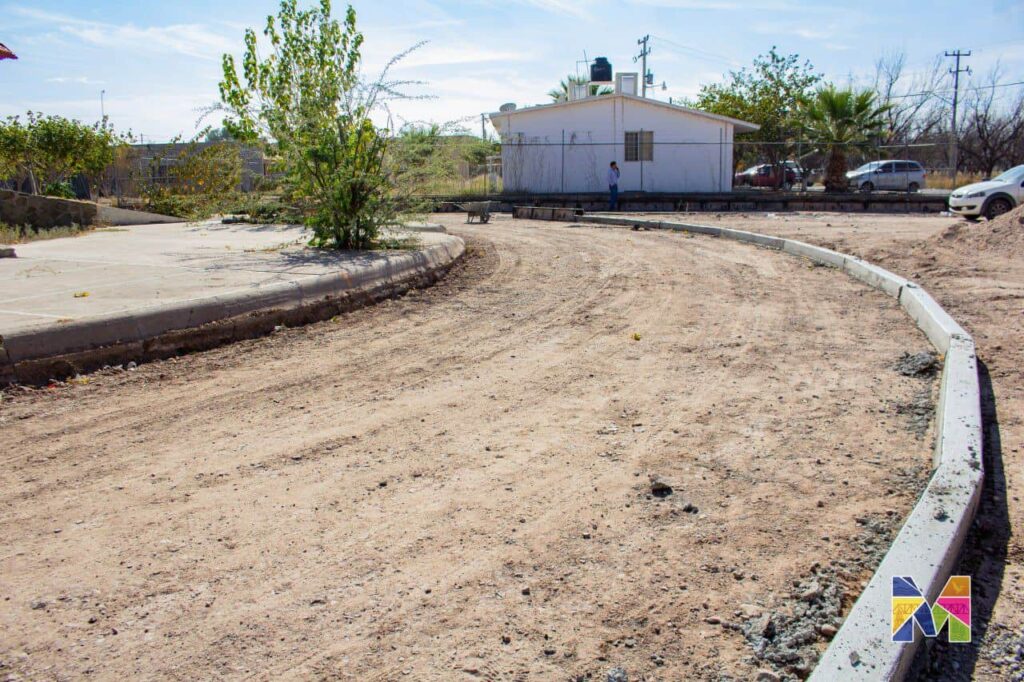 El Gobierno Municipal de Meoqui avanza en la pavimentación de la calle perimetral junto al Salón de Actos en Guadalupe Victoria, una obra muy solicitada por los vecinos.