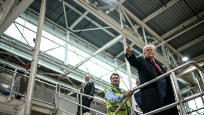 Durante una visita a una planta de ensamblaje, Trump hizo un gesto ofensivo a un trabajador que lo llamó 'protector de pedófilos', en medio de la controversia sobre los archivos de Epstein.