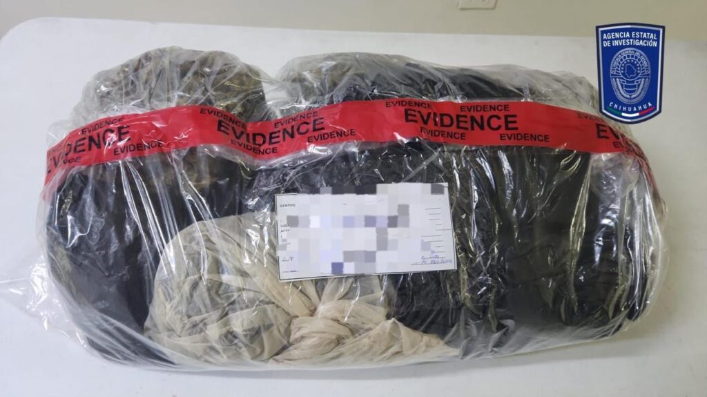 La Fiscalía asegura sustancias similares a cocaína y marihuana en un operativo en la colonia Junta de los Ríos, Chihuahua. Se incautaron también 25 casquillos de 9mm.