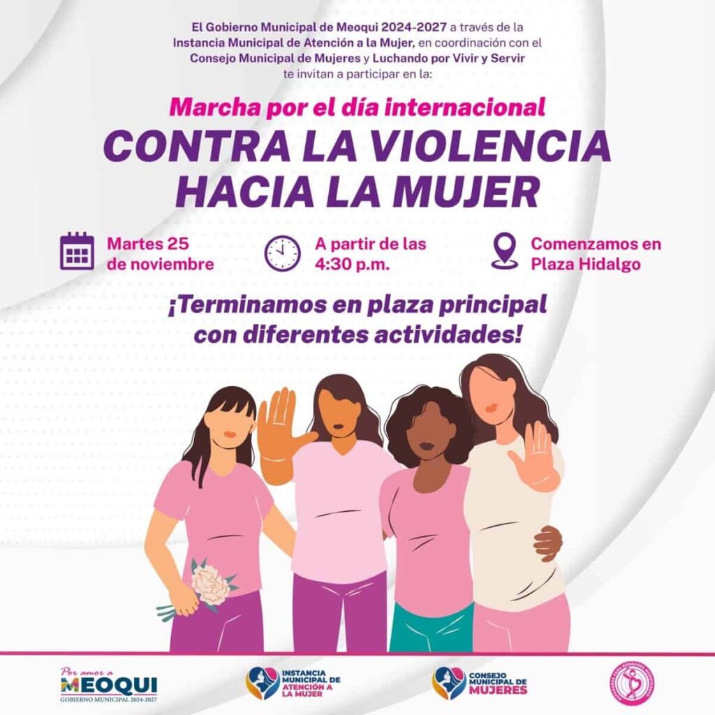 El Gobierno Municipal de Meoqui organiza una marcha el 25 de noviembre para conmemorar el Día Internacional de la Eliminación de la Violencia contra la Mujer, iniciando en la Plaza Hidalgo.