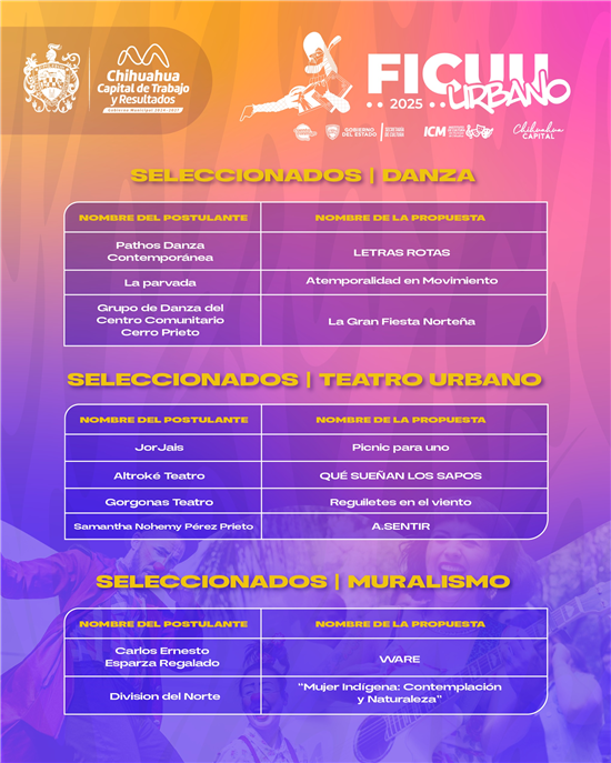 El Gobierno Municipal de Chihuahua anuncia los artistas seleccionados para el Festival Internacional de la Ciudad de Chihuahua 2025, destacando propuestas en danza, teatro urbano, muralismo y música.