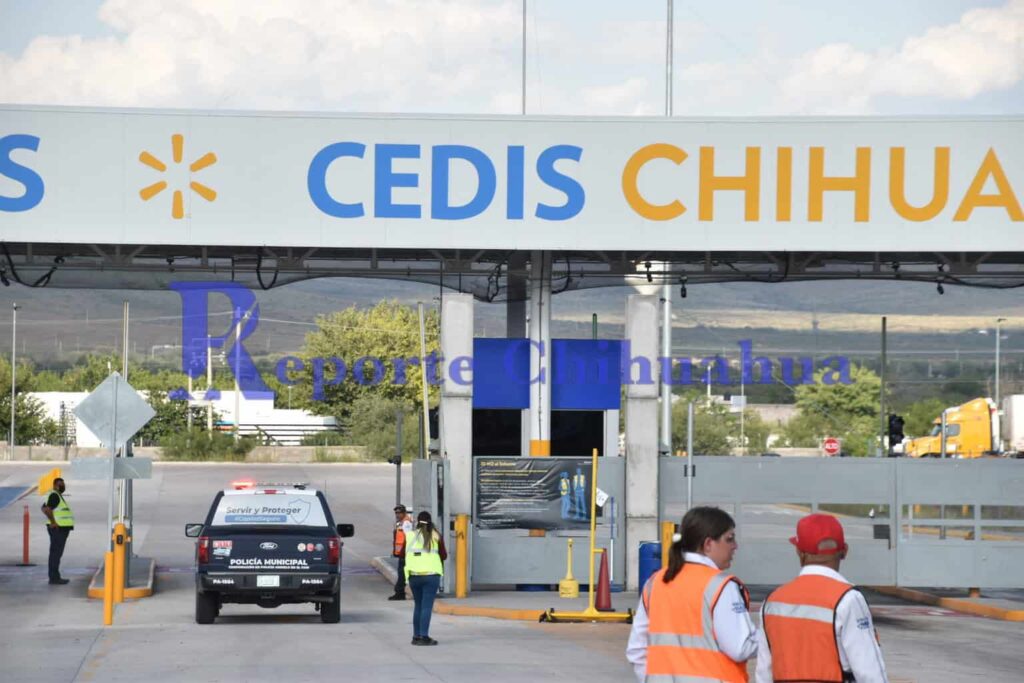 Movilización policial en el CEDIS de Chihuahua tras el hallazgo de supuesta droga en un trailer. La zona fue acordonada y se investiga el caso.