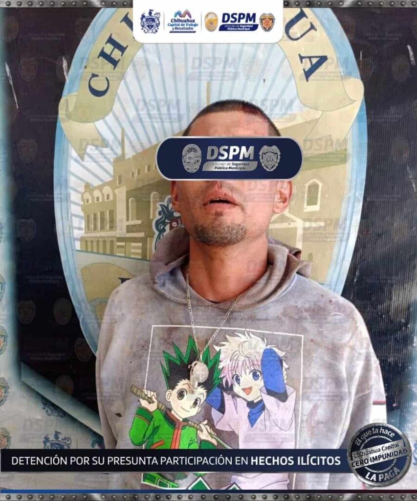 Un hombre de 34 años fue detenido en Chihuahua por delitos contra la salud y tenía una orden de aprehensión por robo de vehículo. La policía lo sorprendió con droga en su poder.