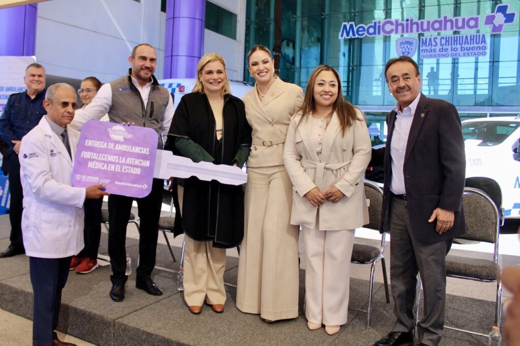 La gobernadora Maru Campos presentó 10 ambulancias para mejorar el servicio médico en nueve municipios de Chihuahua, con una inversión de 17.8 millones de pesos.